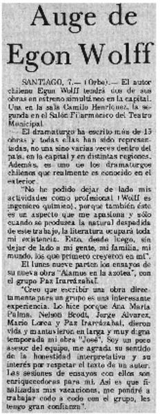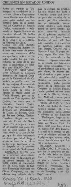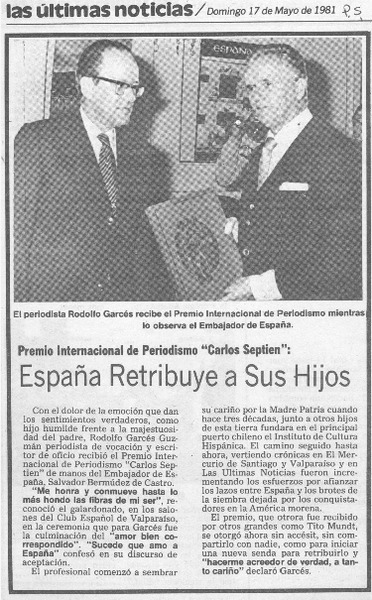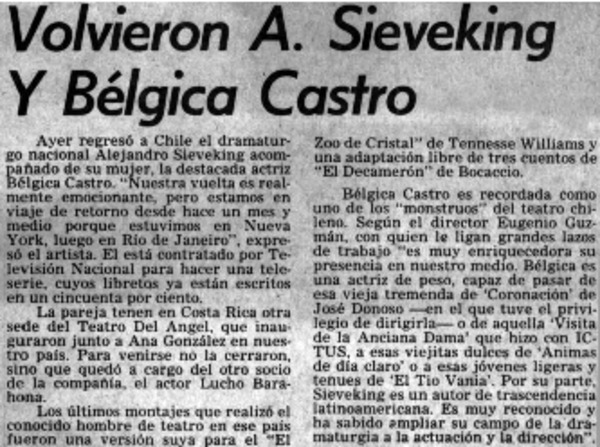 Volvieron A. Sieveking y Bélgica Castro. [artículo]