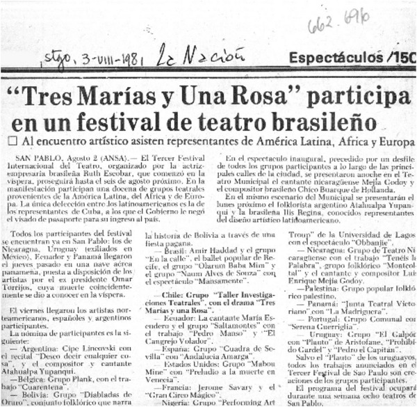 A Brasil se van ahora Las "Tres Marías y una Rosa". [artículo]