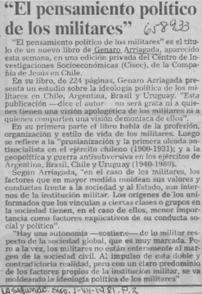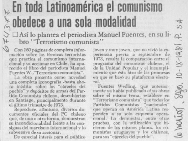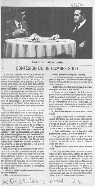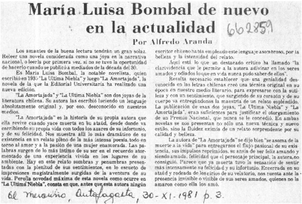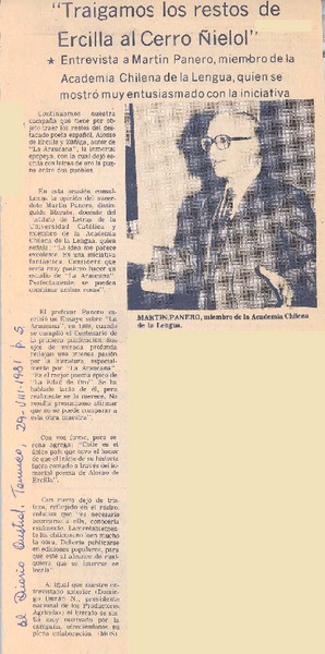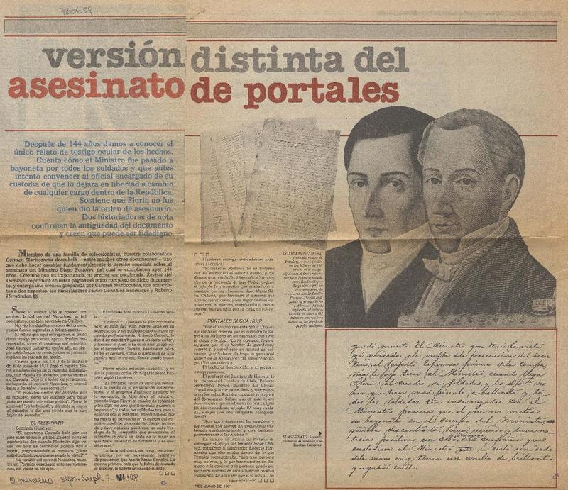 Versión distinta del asesinato de Portales [entrevista] [artículo] : Carmen Marticorena.