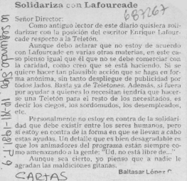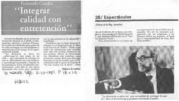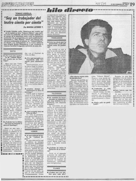 Vilar no es para la franja cultural" [Entrevista]. [artículo] :