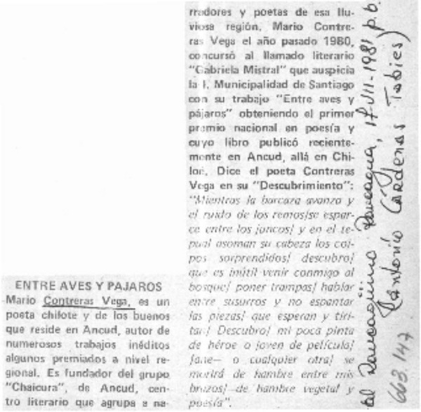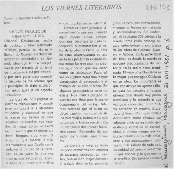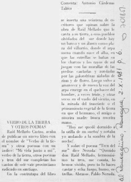 Verbo de la tierra y otros poemas [artículo] Antonio Cárdenas Tabies.