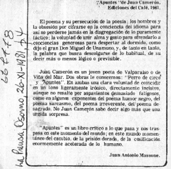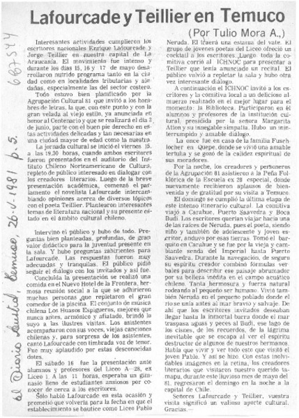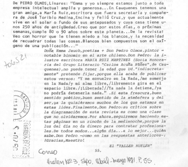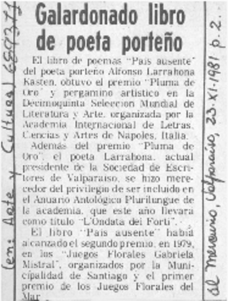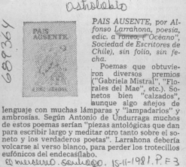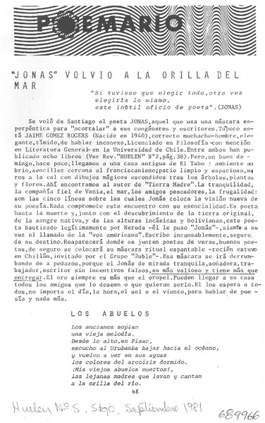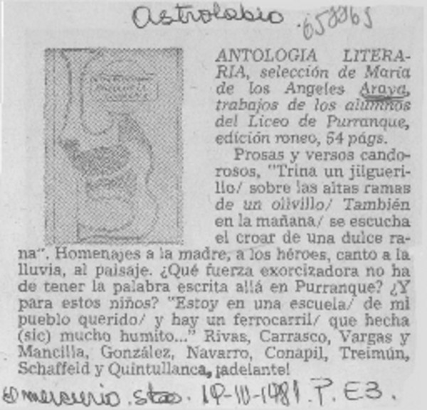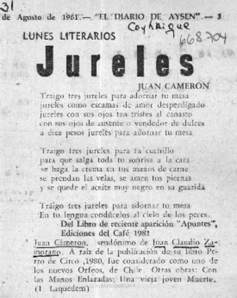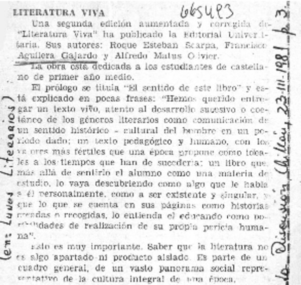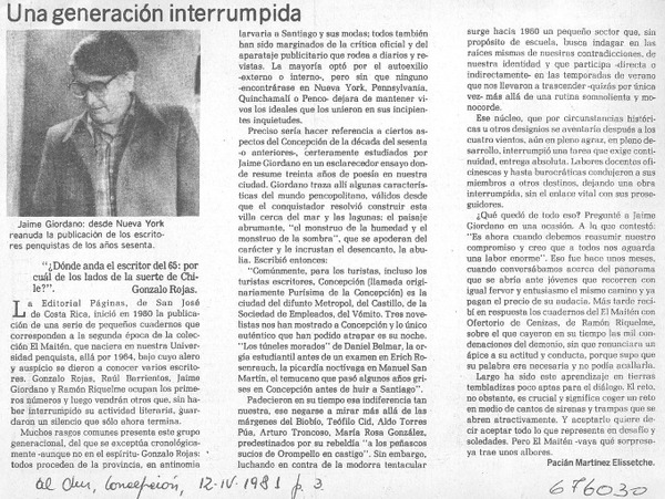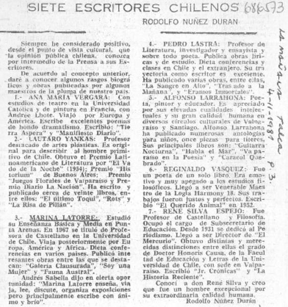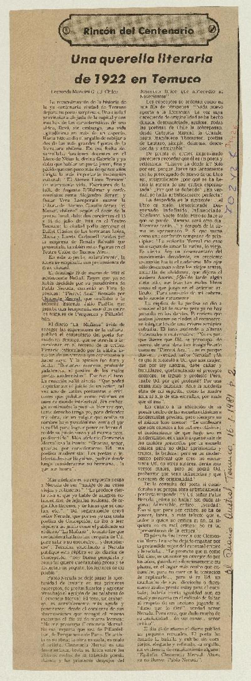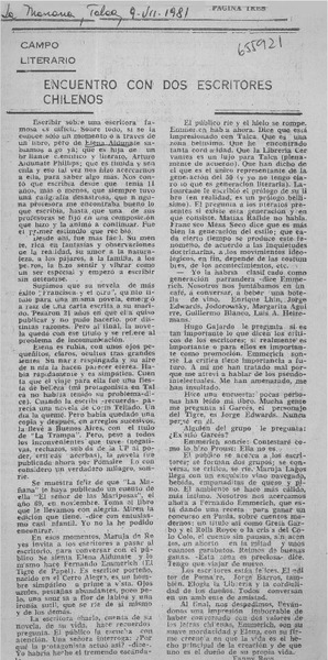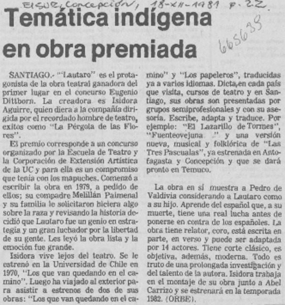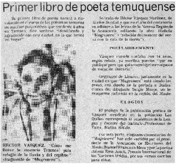 Autores chilenos - Millas, Ismael - Lautaro - entrevista - Aguirre, Isidora
