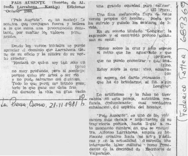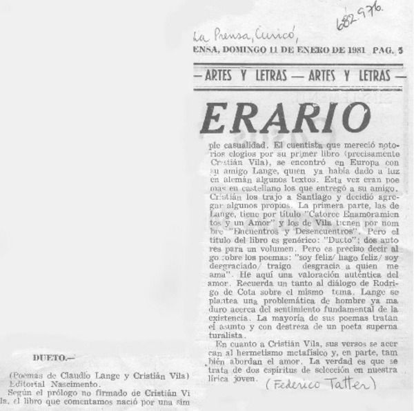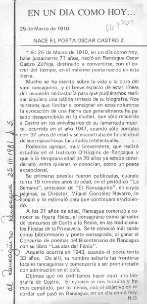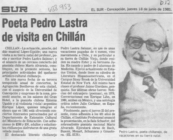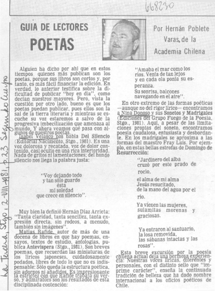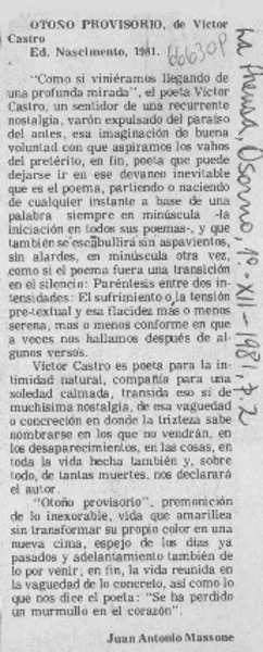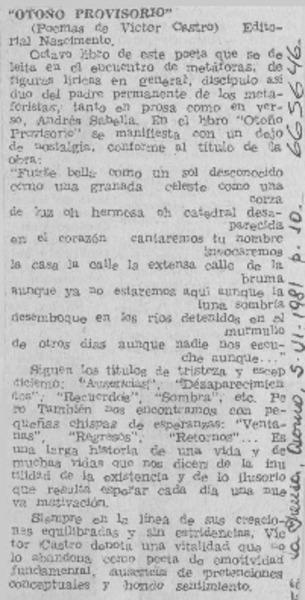 Víctor Castro y la poesía [artículo] Andrés Sabella.