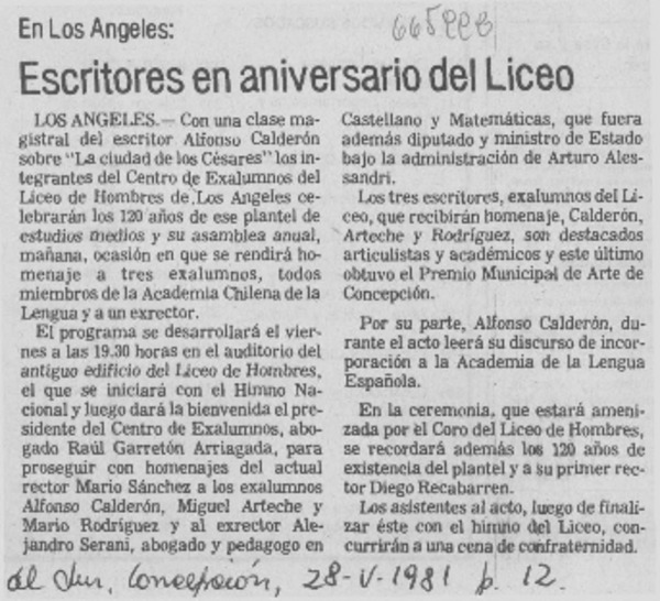 Academia de la Lengua recibió a A. Calderón. [artículo]