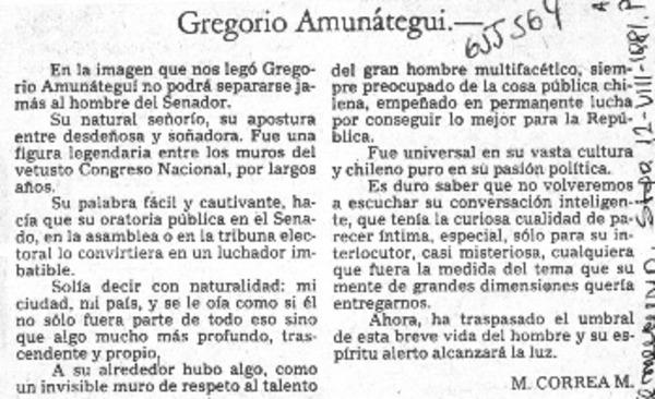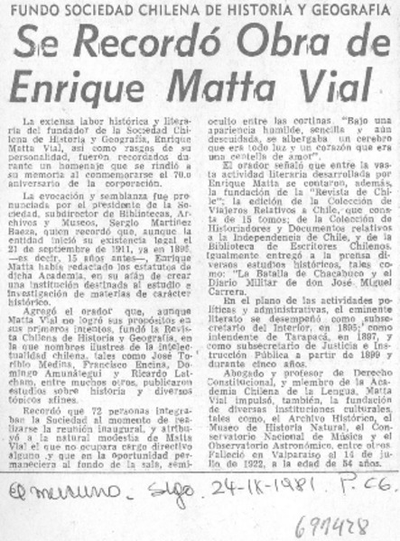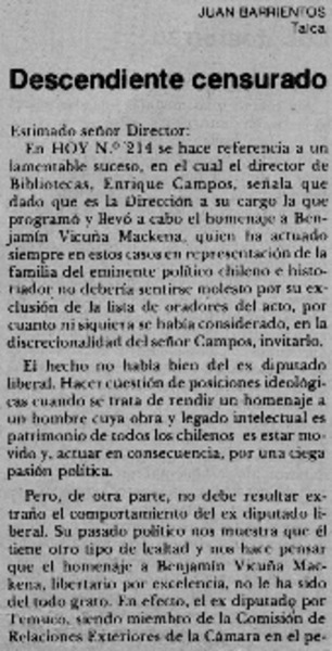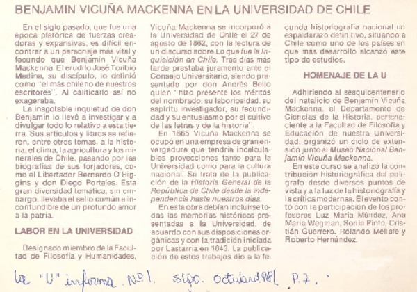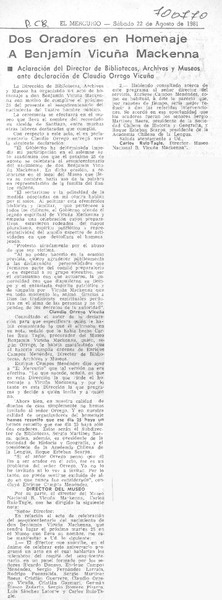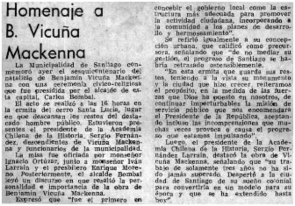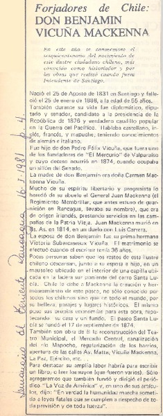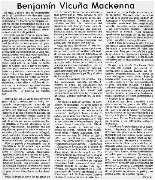 Vicuña Mackenna, Benjamín - Autores chilenos - Orrego Vicuña, Claudio - Homenajes