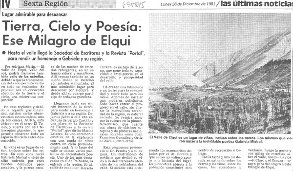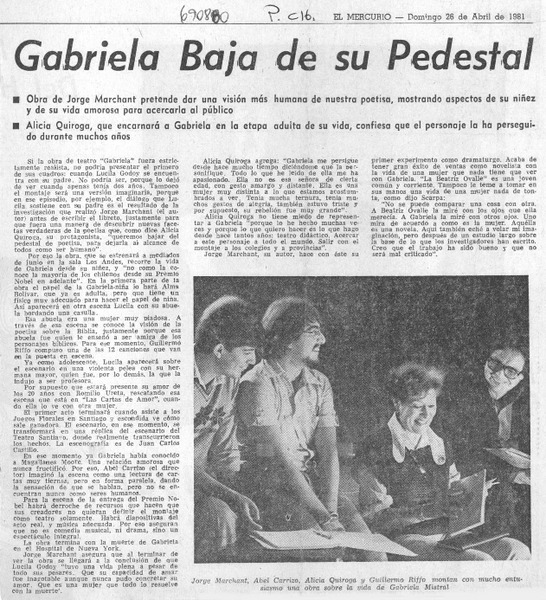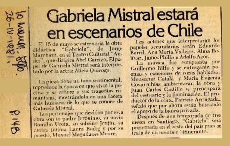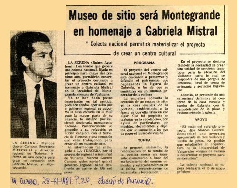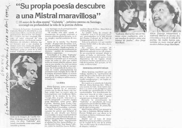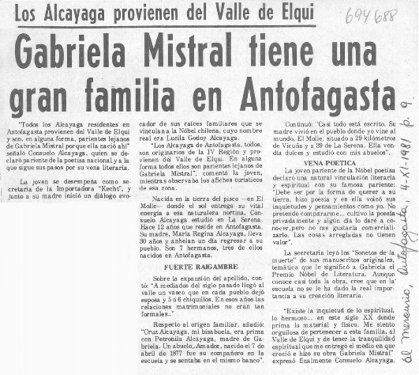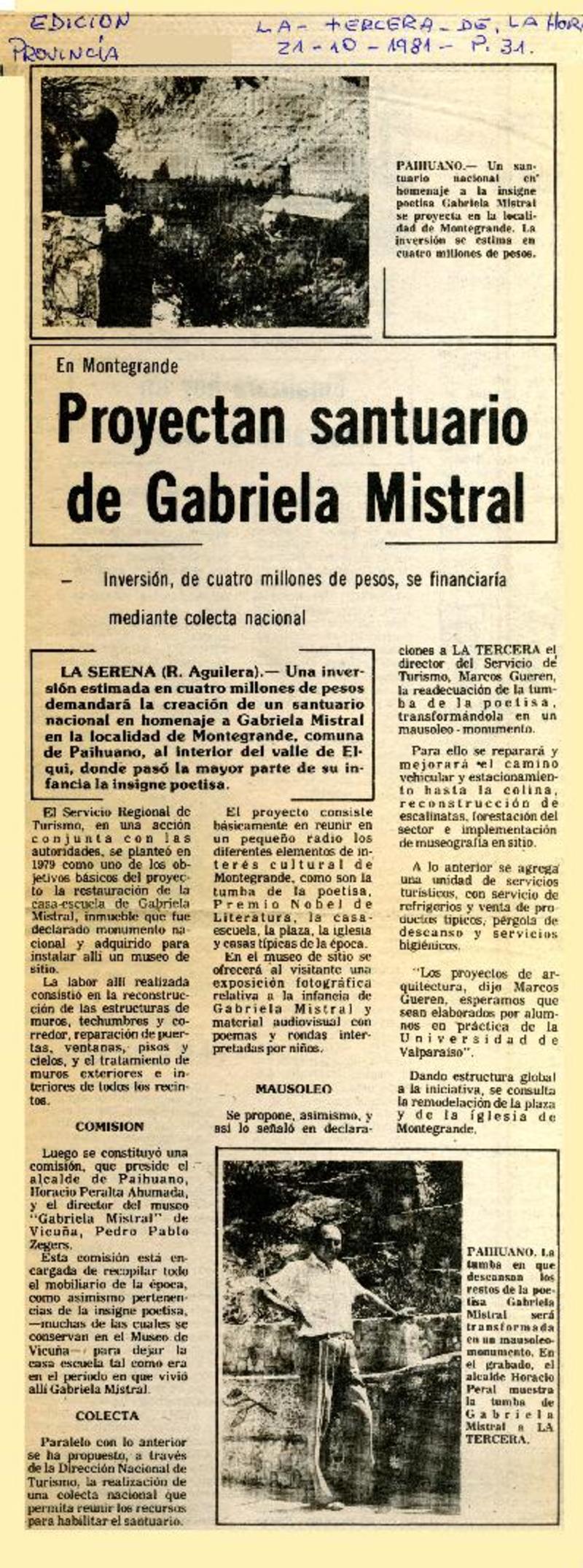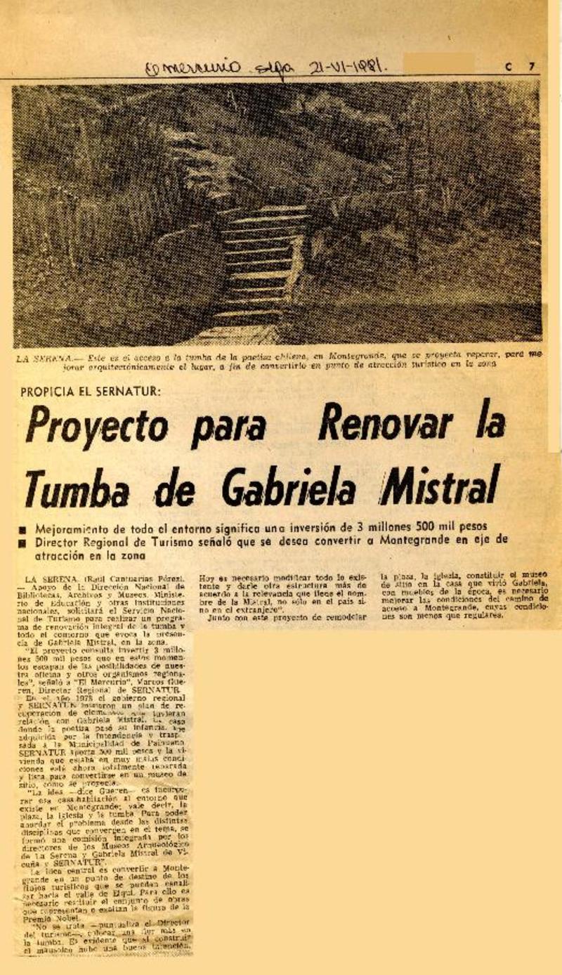 Vicuña recordó el natalicio de poetisa Gabriela Mistral [artículo] Guillermo Alcayaga.
