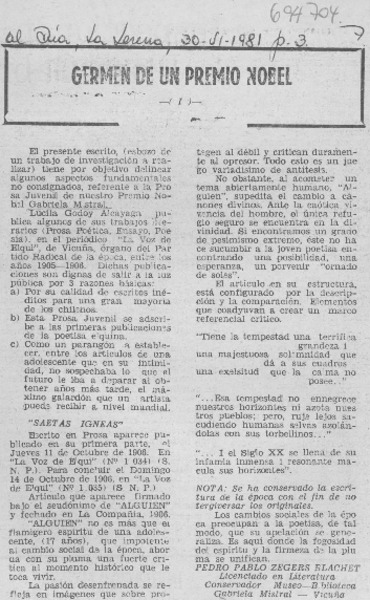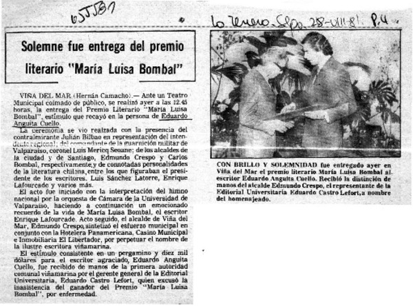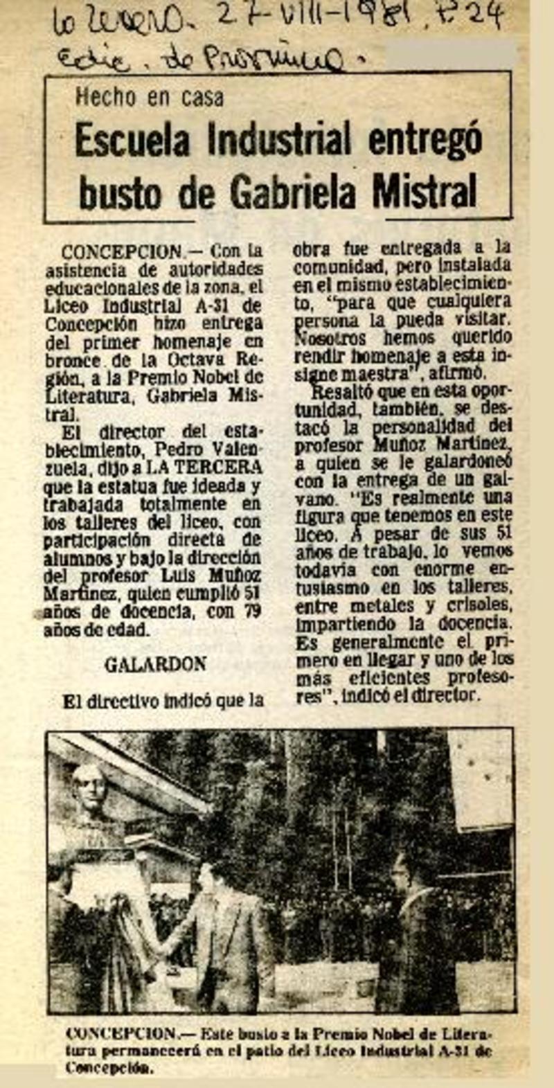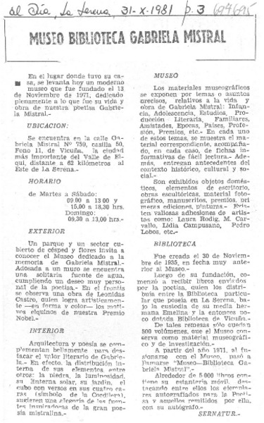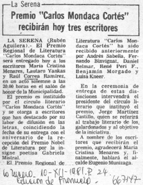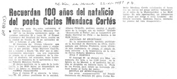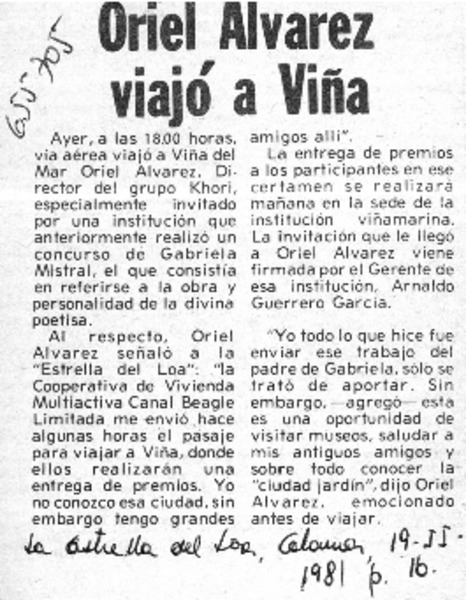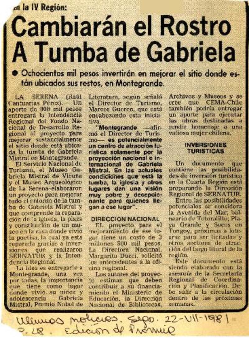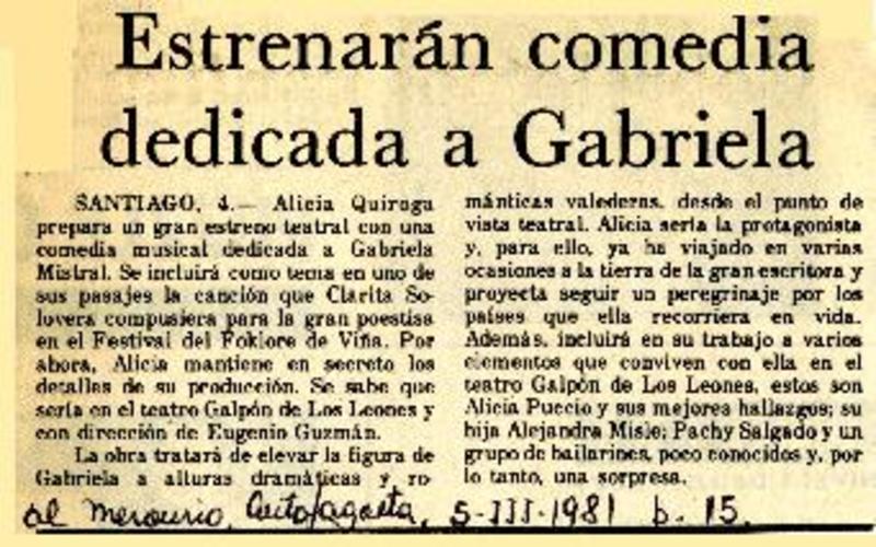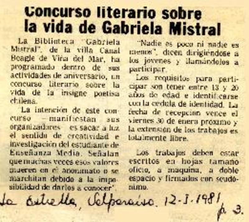 Vicuña recordó el natalicio de poetisa Gabriela Mistral [artículo] Guillermo Alcayaga.