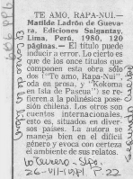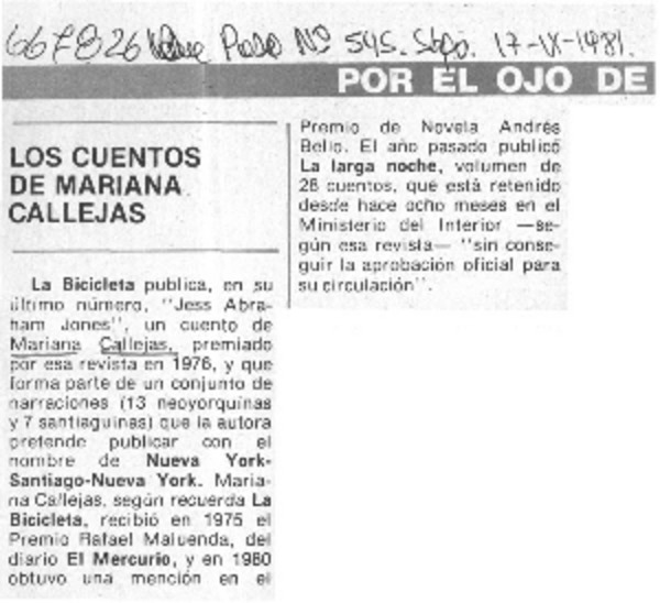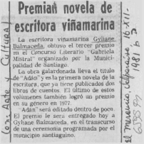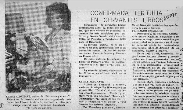 Autoras chilenas - Cox Balmaceda, Virginia - entrevista