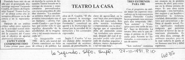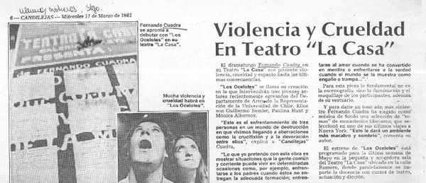 Violencia y crueldad en teatro "La Casa". [artículo].