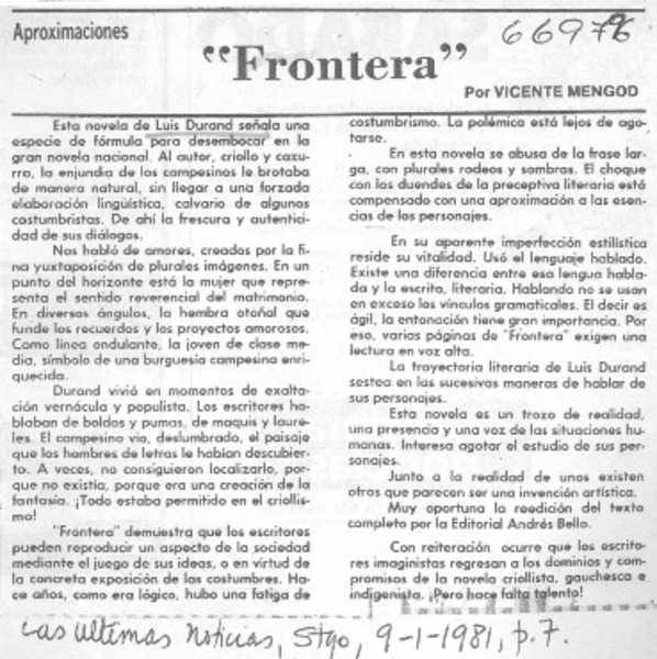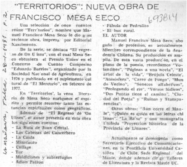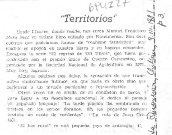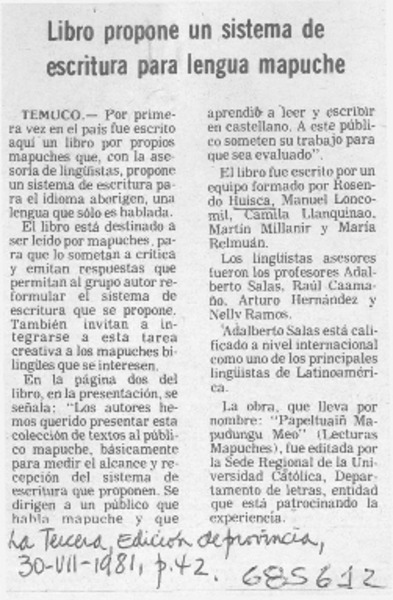 Versión del TIUN para "La viuda de Apablaza" [artículo] Glauco.