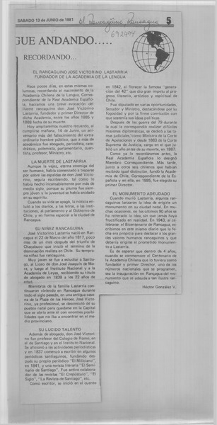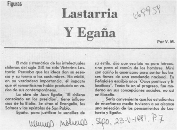 Lastarria, José Victorino - Mora, José Joaquín de - Mandiola, Rómulo - Autores venezolanos - Bello, Andrés - Autores chilenos