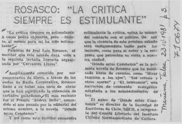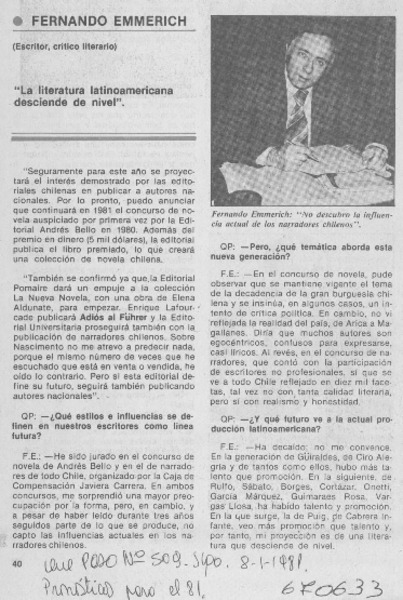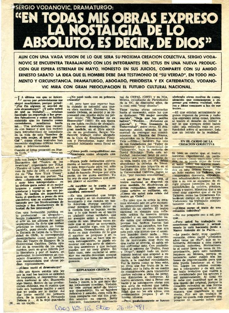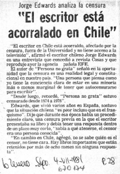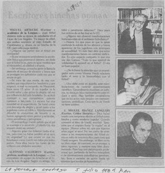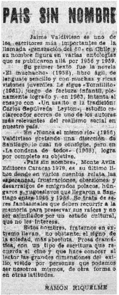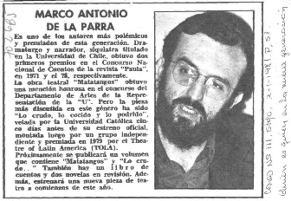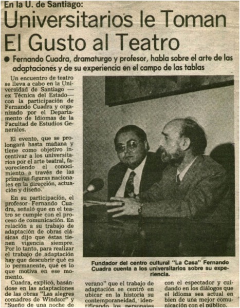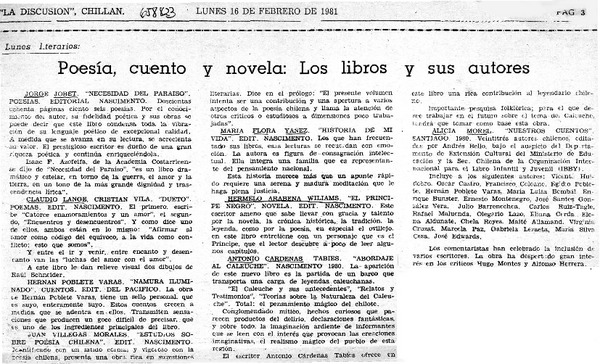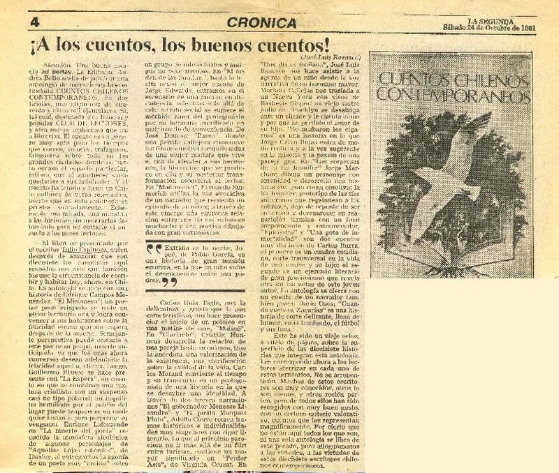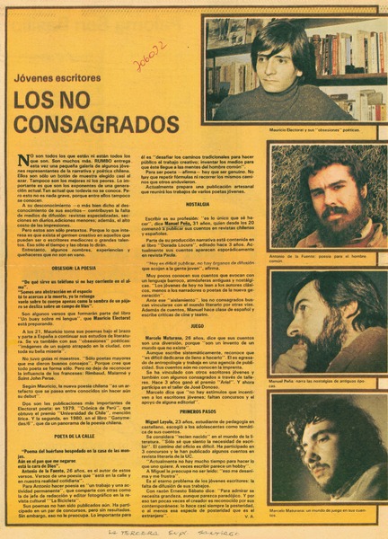 Autores chilenos - Entrevistas - Cuadra, Fernando - entrevista - Rojas, Pepe - Durante, Pury - Klesky, Anita - Vilar, Jorge