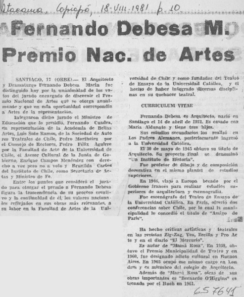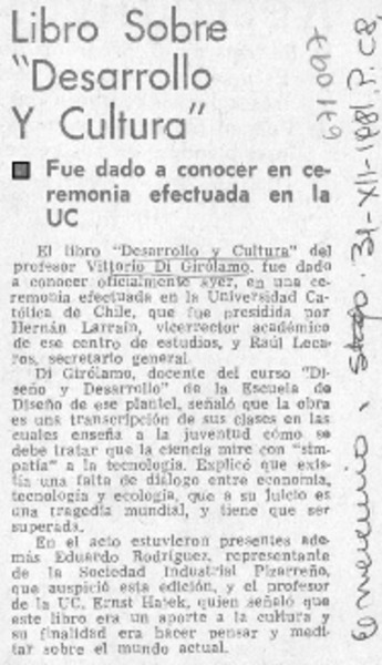 Virginia Cox Balmaceda cerró "Renacimiento" su actividad cultural de 1980. [artículo]