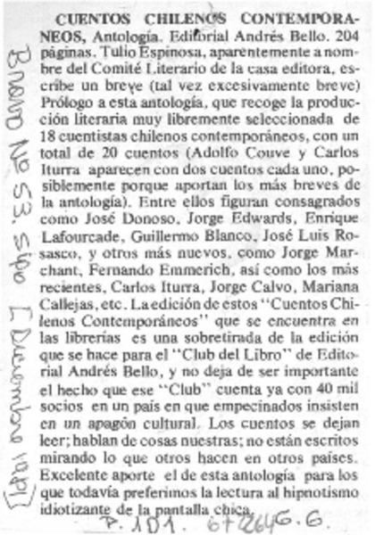 Emmerich, Fernando - Cuentos chilenos contemporáneos - Autores chilenos - Iturra, Carlos