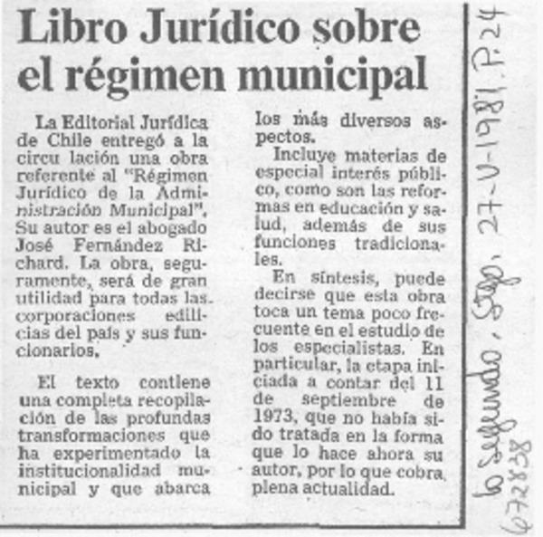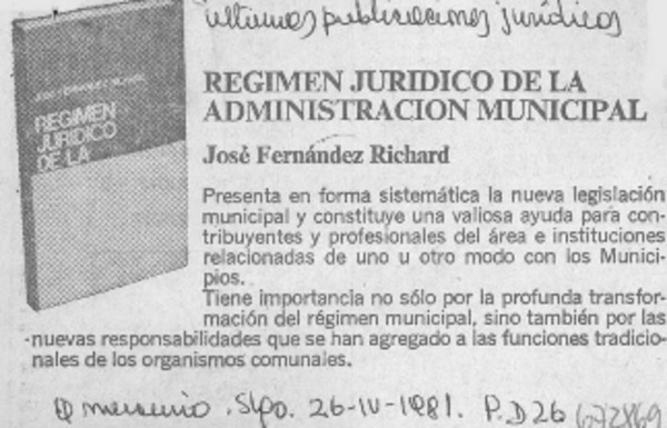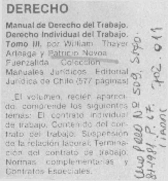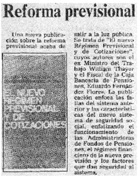 Autores chilenos - Thayer, William - Fernández, Eduardo - Nuevo régimen previsional y de cotizaciones