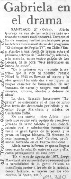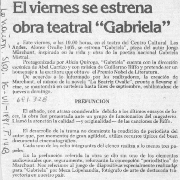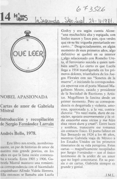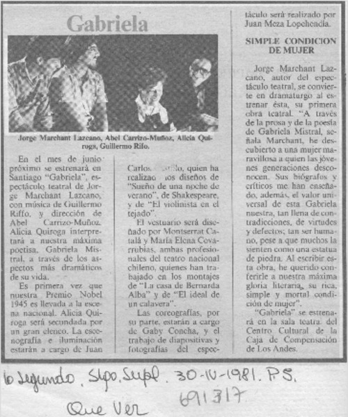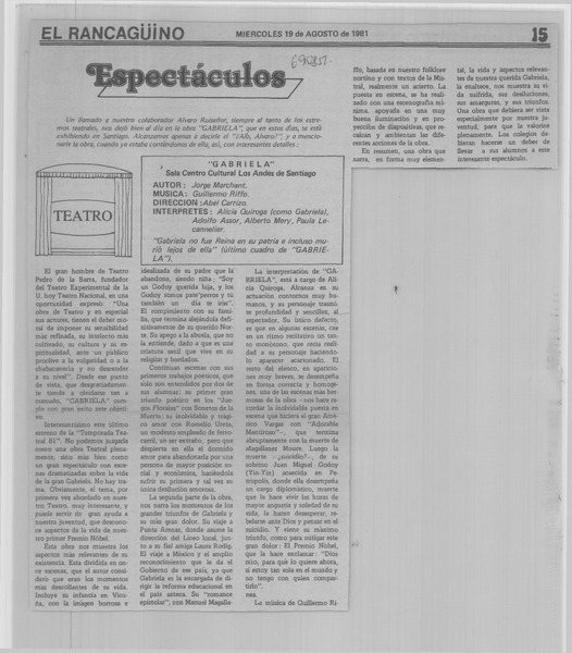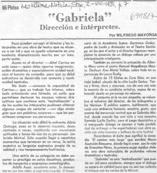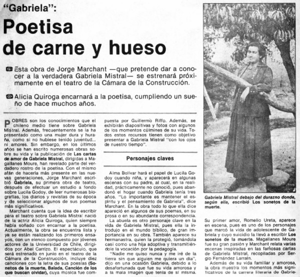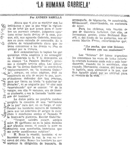 Vida, amor y muerte de Gabriela [artículo] René Sepúlveda.