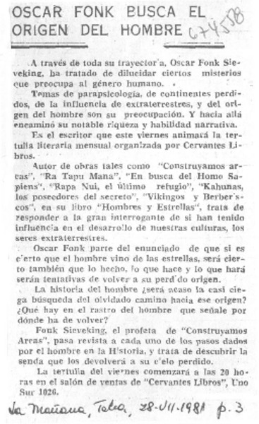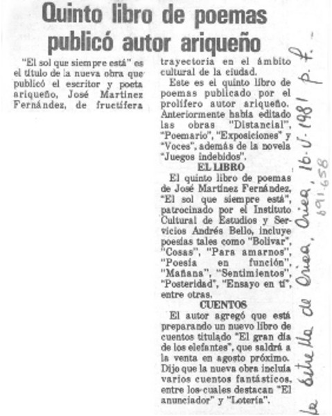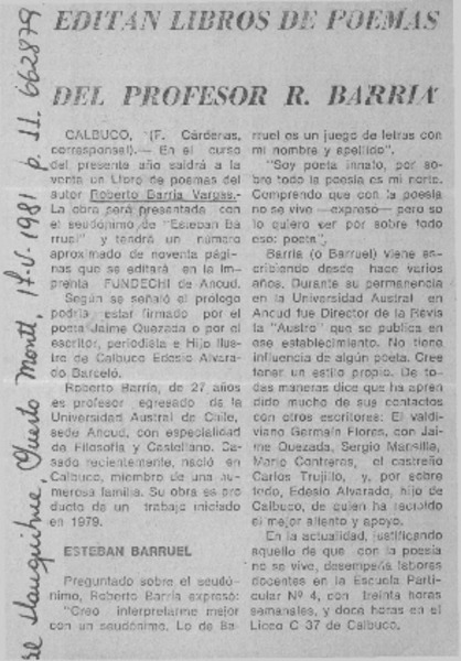 Abogado y poeta prepara libro de ciencia-ficción. [artículo]