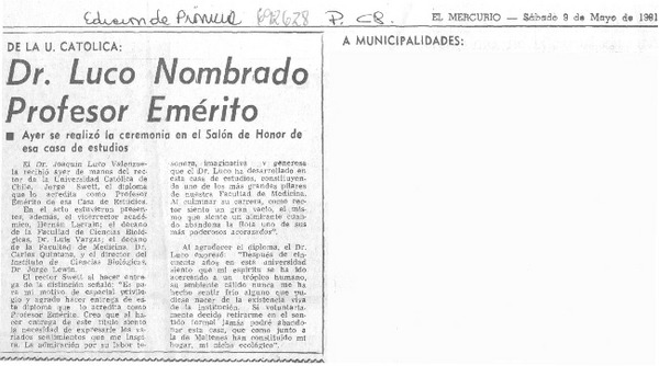 Académico Augusto Pescador designado profesor emérito. [artículo]