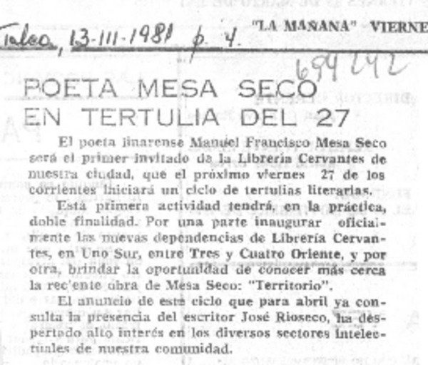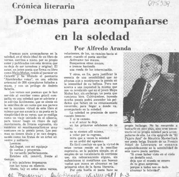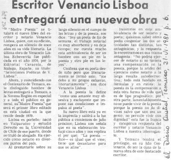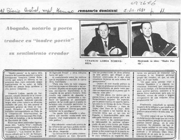 Abogado, notario y poeta traduce en "Madre poesía" su sentimiento creador. [artículo]