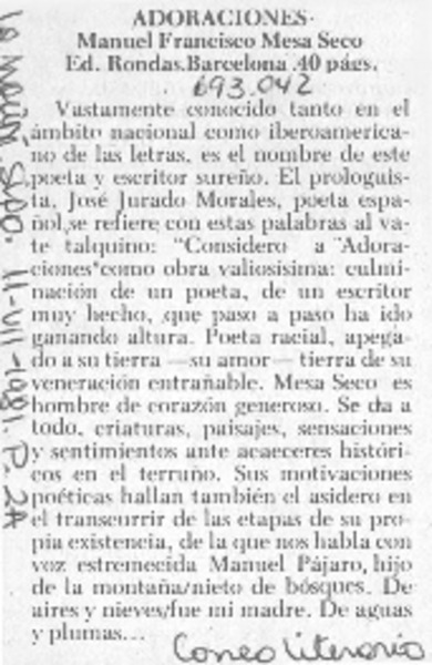 Autores chilenos - Mesa Seco, Manuel Francisco - Adoraciones