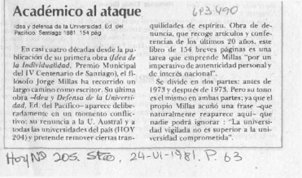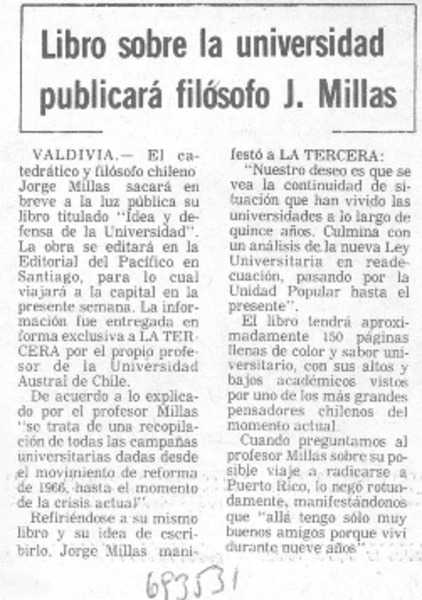 Autores chilenos - Millas, Jorge - Idea y defensa de la Universidad