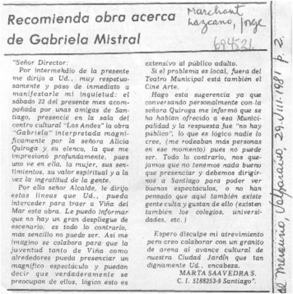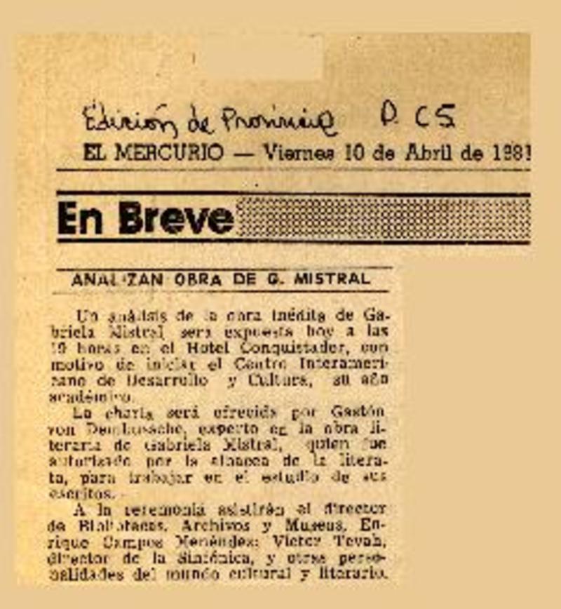 Y otra vez Gabriela Mistral" [artículo] Alfonso Larrahona Kästen.