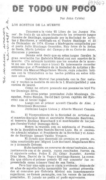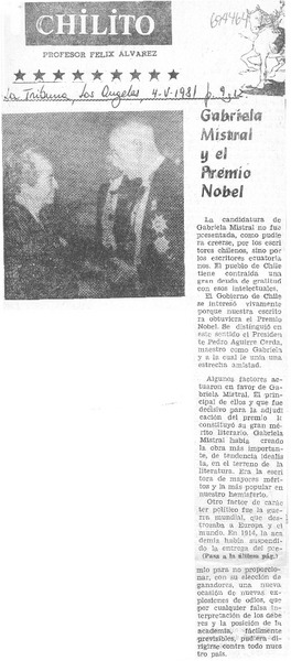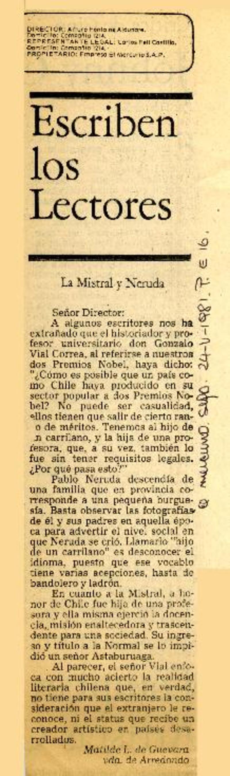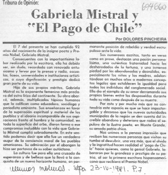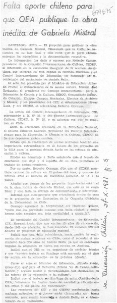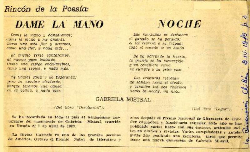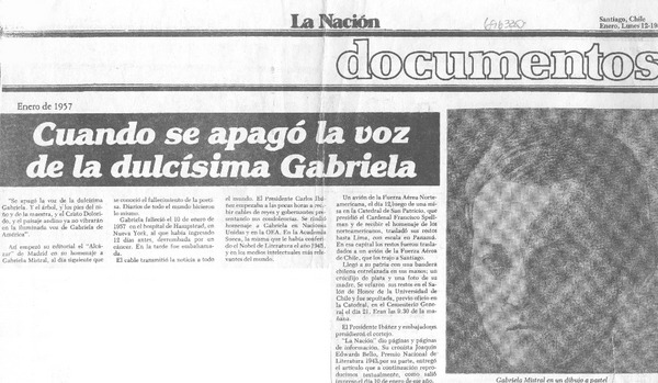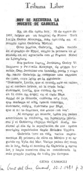 A 24 años de la muerte de Gabriela Mistral. [artículo]