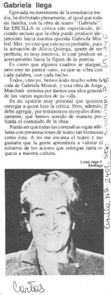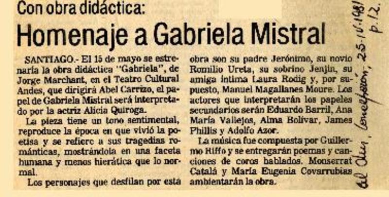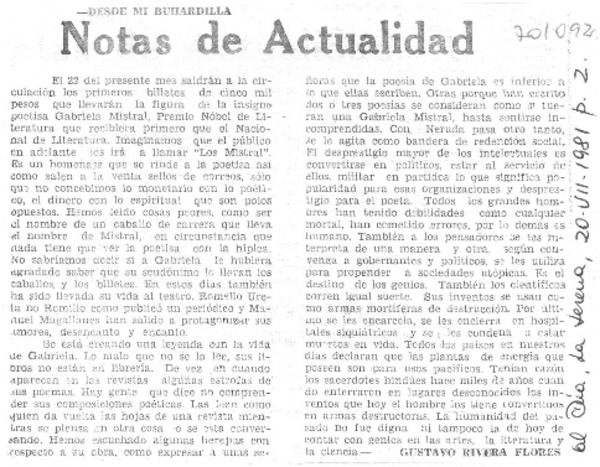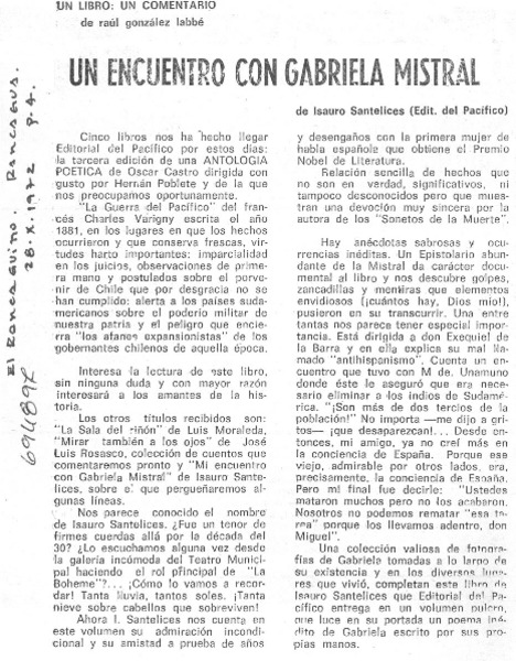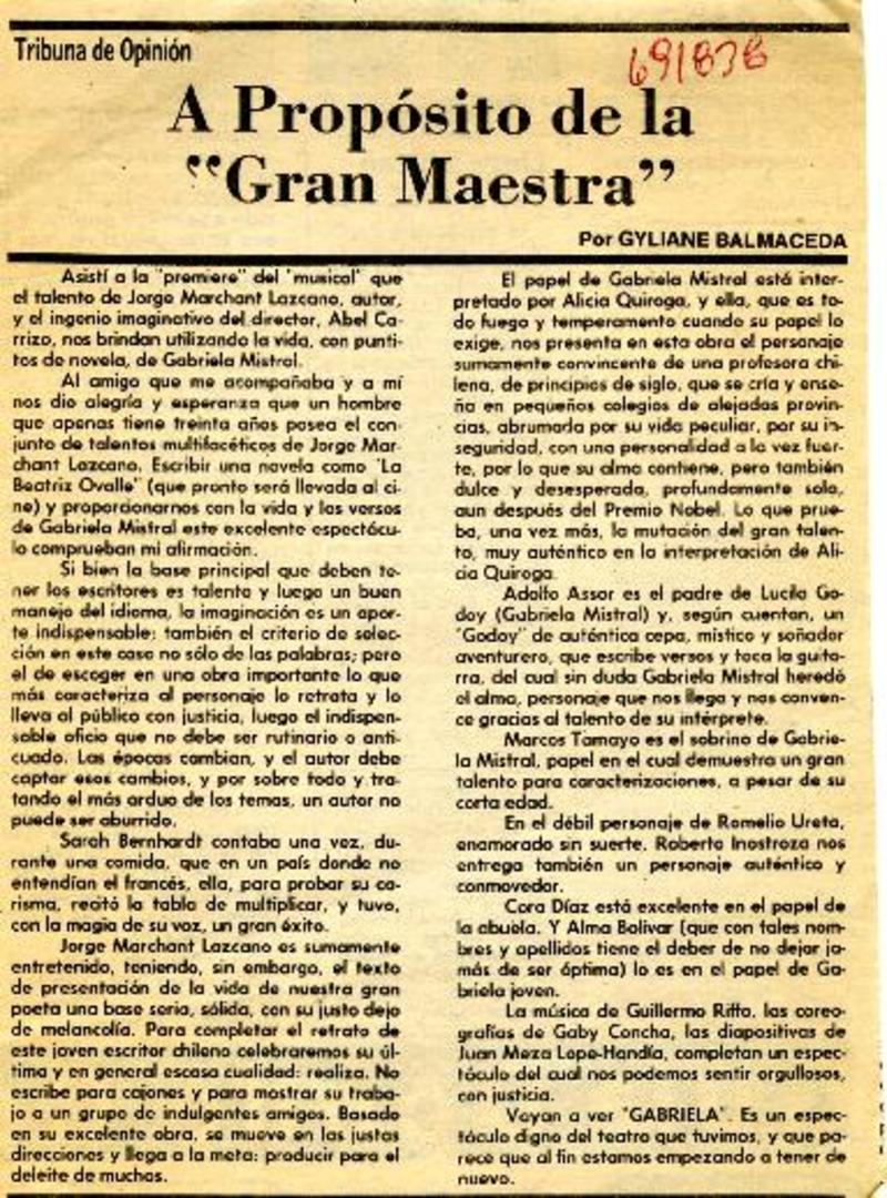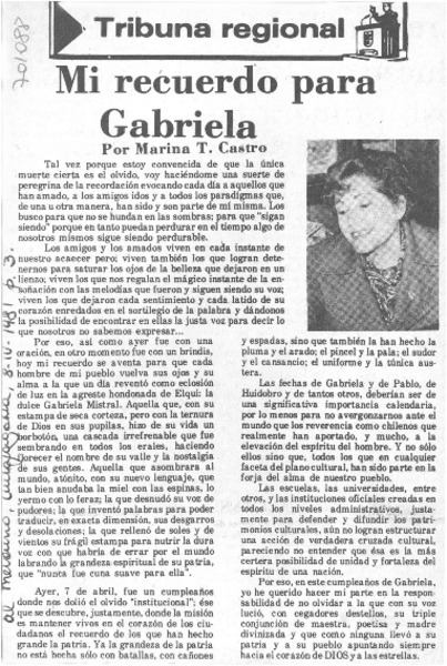 A Gabriela Mistral [artículo] Augusto César Roa Villagra.