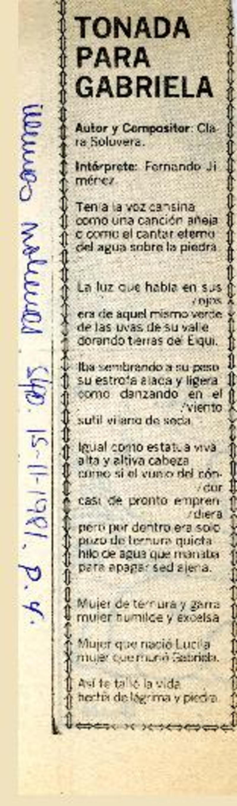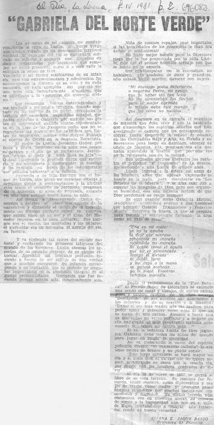 Y la llamaban Gabriela [artículo] Carlos Ruíz Zaldívar.