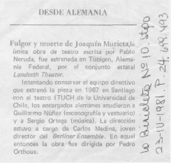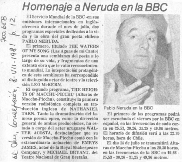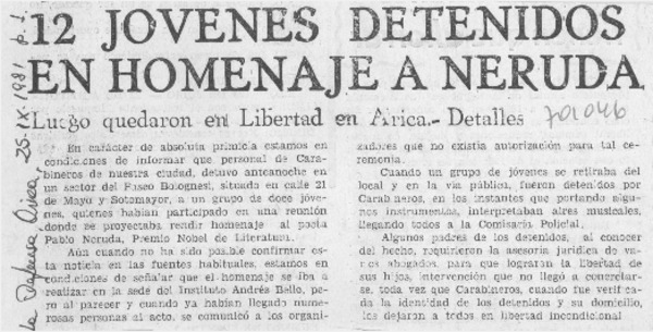 12 jóvenes detenidos en homenaje a Neruda. [artículo]