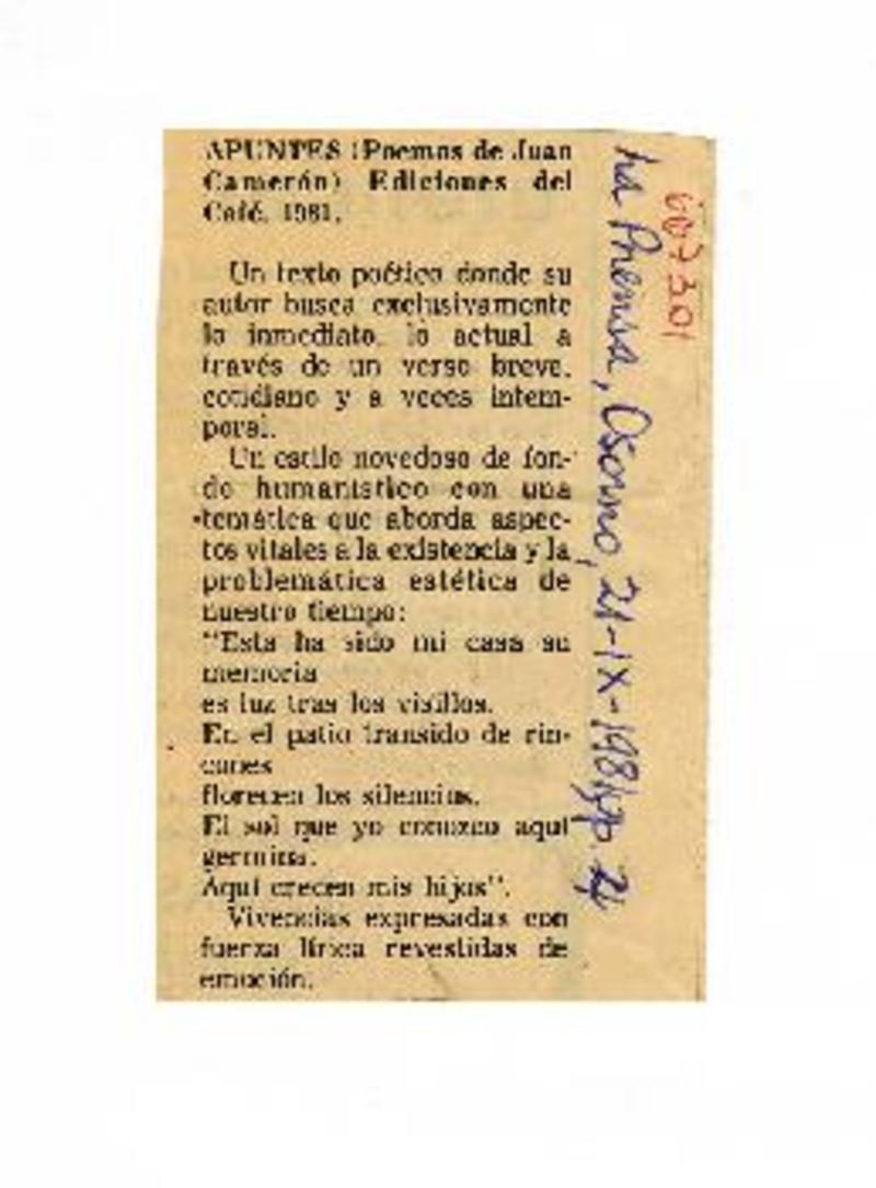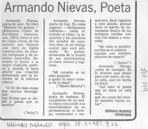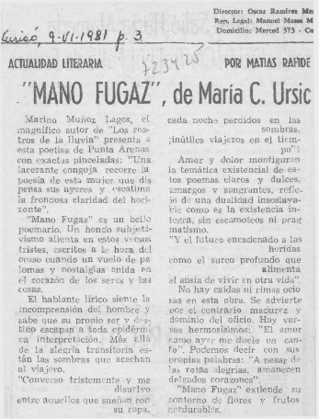 Versos netos de Víctor Franzani [artículo] Andrés Sabella.