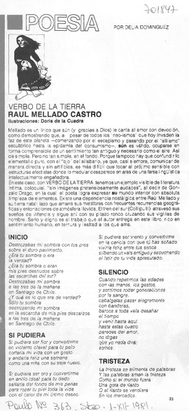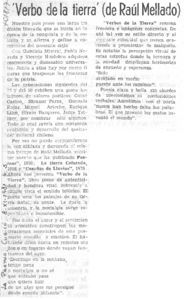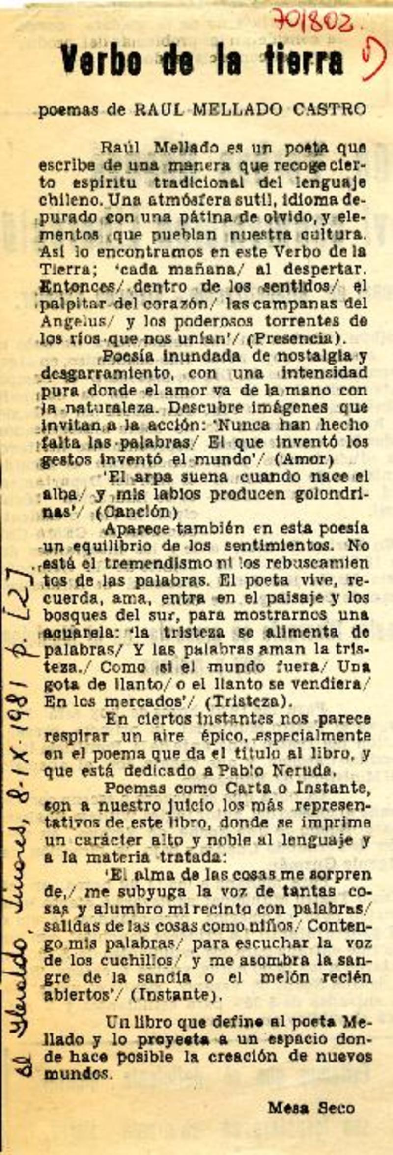 Mellado, Raúl - Autores chilenos - Verbo de la tierra y otros poemas