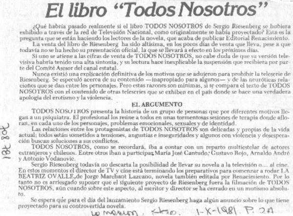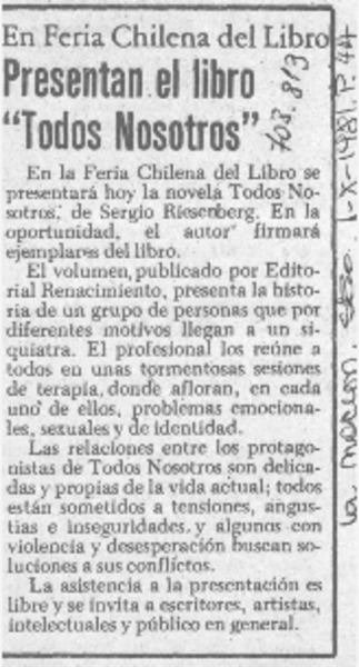 Todos nosotros - Riesenberg, Sergio - Autores chilenos