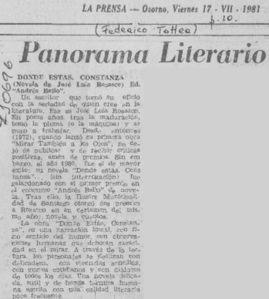 Vicente Pérez Rosales [artículo] Juan J. Rodríguez Contreras.