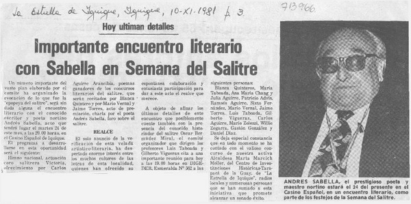 Zonal Chuquicamata apoya a A. Sabella. [artículo]
