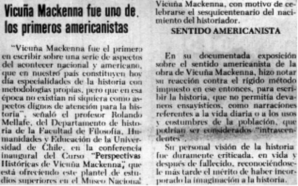 Vicuña Mackenna fué uno de los primeros americanistas. [artículo]