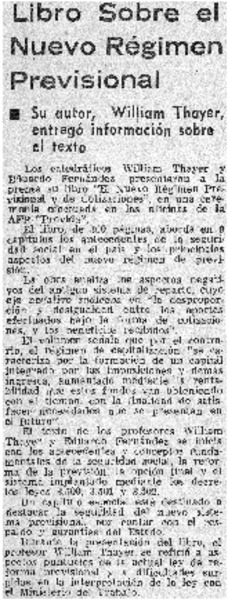 Autores chilenos - Nuevo régimen previsional y de cotizaciones - Thayer, William