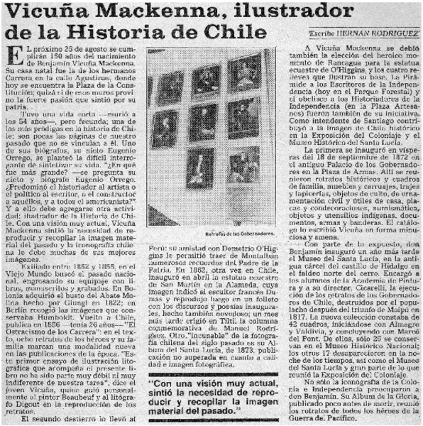 Vicuña Mackenna, ilustrador de la historia de Chile [artículo] Hernán Rodríguez.