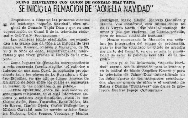 Versión en TV de cuento de Baldomero Lillo irá a un concurso en Lima. [artículo]
