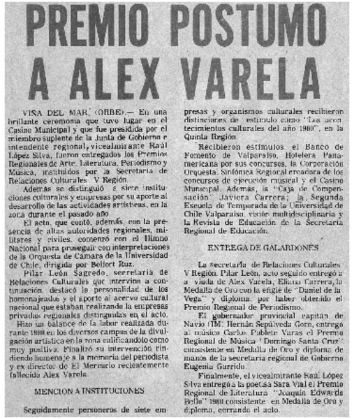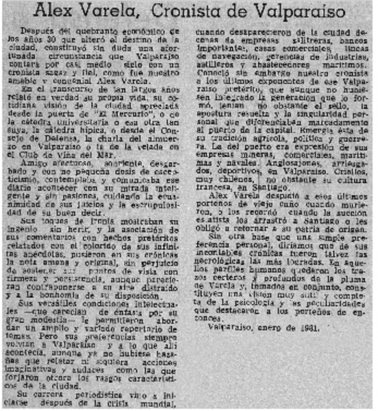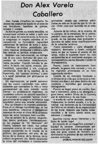 Adiós a don Alex Varela [artículo] Carlos Ruíz Zaldivar.