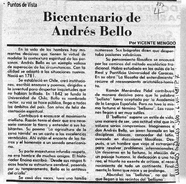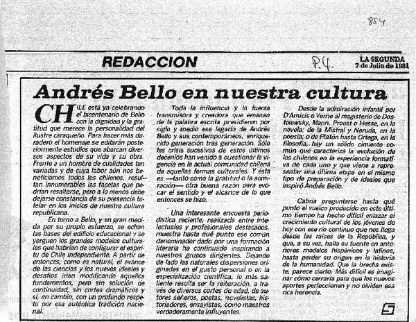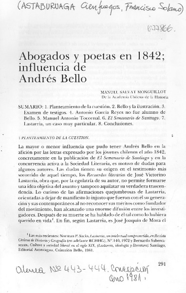 Abogados y poetas en 1842; influencia se Andrés Bello [artículo] Manuel Salvat Monguillot.