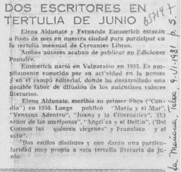 Autoras chilenas - Aldunate, María Elena - Vial, Magdalena