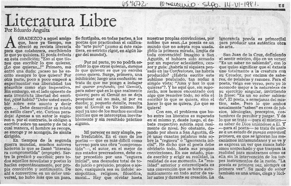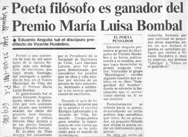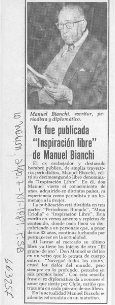 Ya fue publicada "Inspiración libre" de Manuel Bianchi. [artículo]