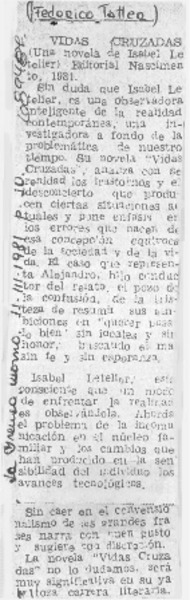 Autores chilenos - Vidas cruzadas - Letelier, Isabel