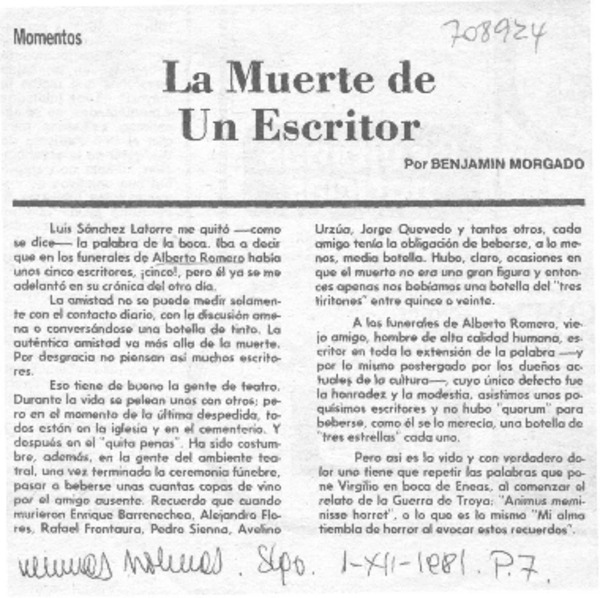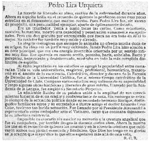 Acto recordatorio a Pedro de la Barra. [artículo]