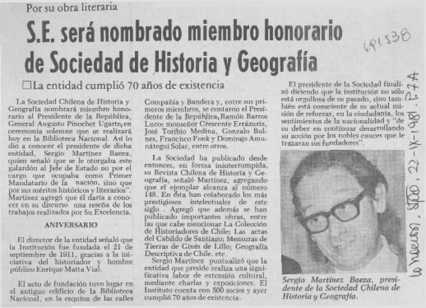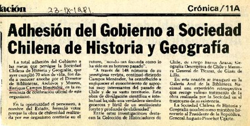 Adhesión del gobierno a sociedad chilena de historia y geografía. [artículo]