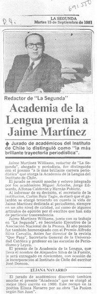 Academia de la Lengua premia a Jaime Martínez. [artículo]