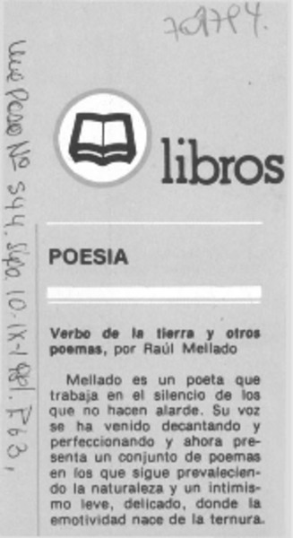 Verbo de la tierra y otros poemas - Mellado, Raúl - Autores chilenos