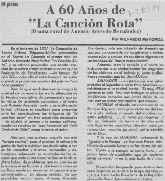 A 60 años de "la canción rota" [artículo] Wilfredo Mayorga.