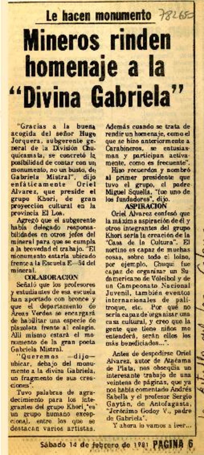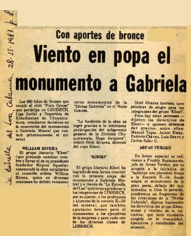 Viento en popa el monumento a Gabriela Con aportes de bronce [artículo] :